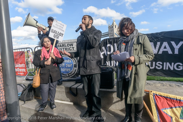 Eileen Short of Defend Council Housing speaks and calls for the protesters