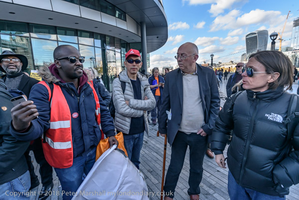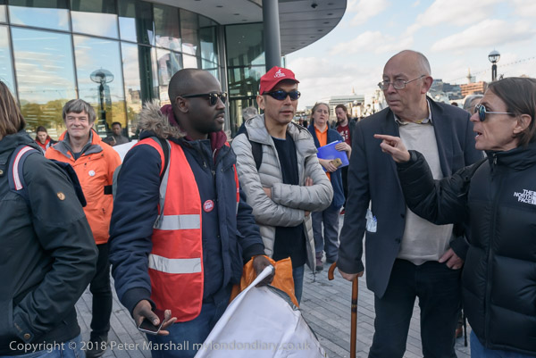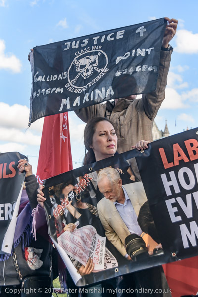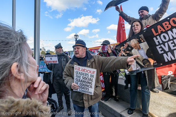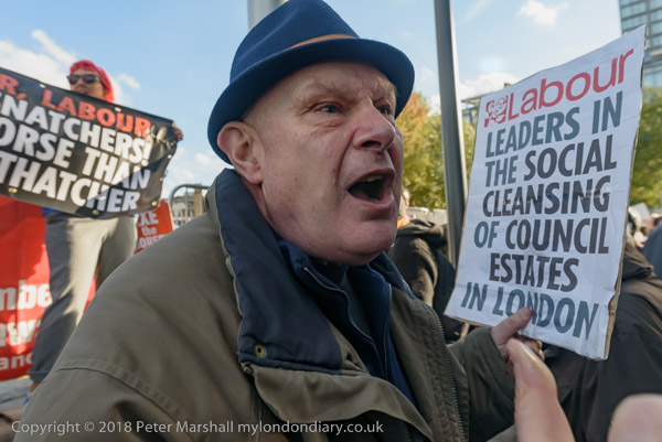 Martin Smith of Class War shouts loudly at Labour Party supporters