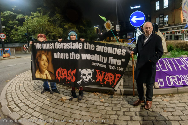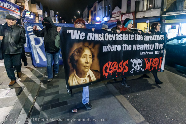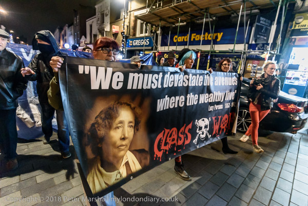 and Class War's Lucy Parsons banner 'We must devastate the avenues