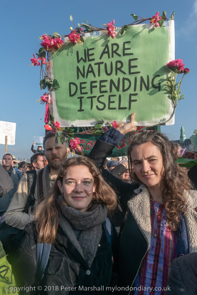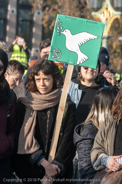 Extinction Rebellion is a non-violent rebellion - a sign with the