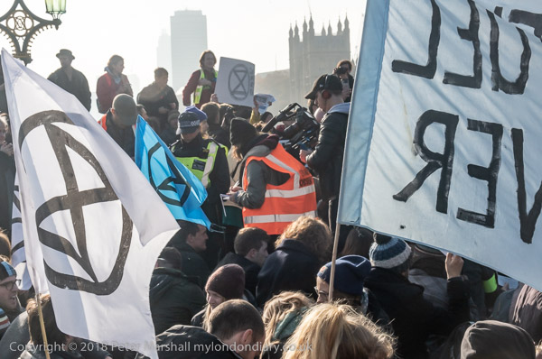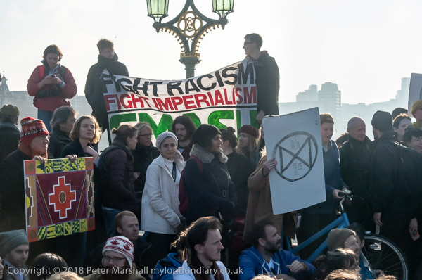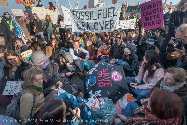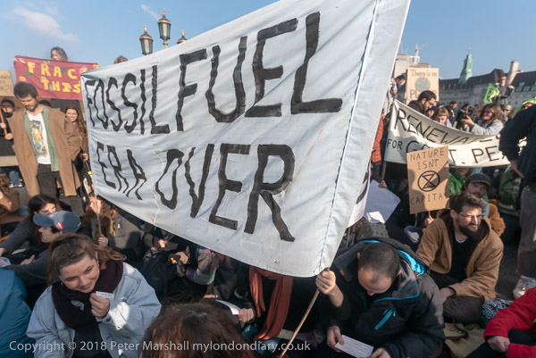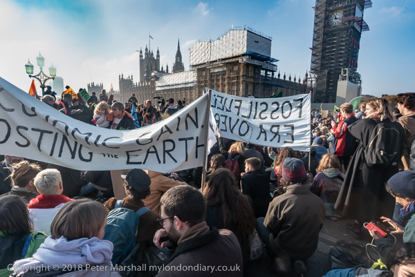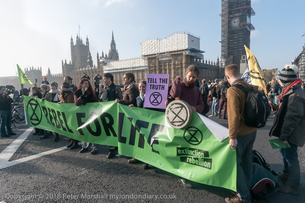 'Rebel For Life' the Extinction Rebellion main banner across the road