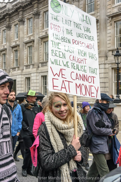 has been caught will we realise that we cannot eat money.' A placard quotes