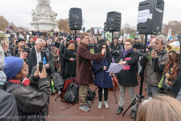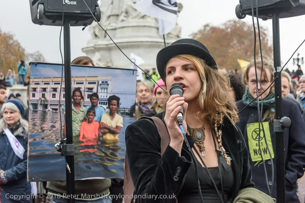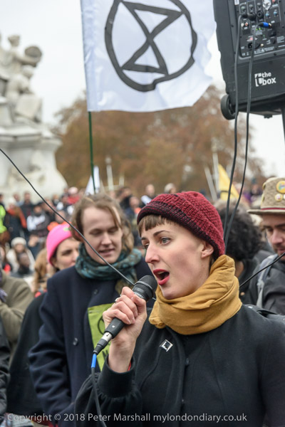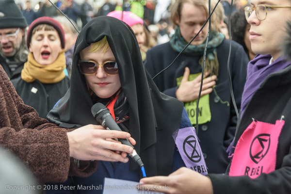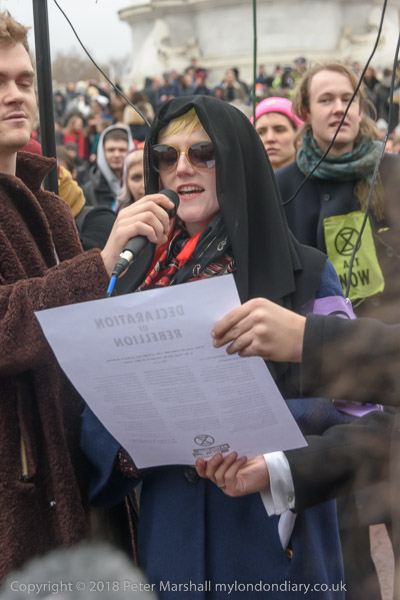 XR's Gail Bradbrook reads out a letter calling on the Queen to get