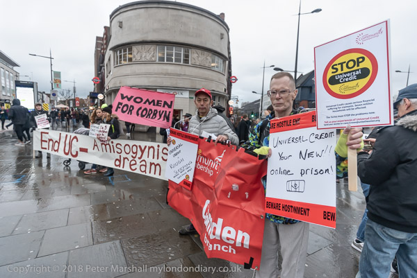 Protesters in Camden Town handed out leaflets in one of many nationwide protests in a day of action called by Unite Community to stop Universal Credit.