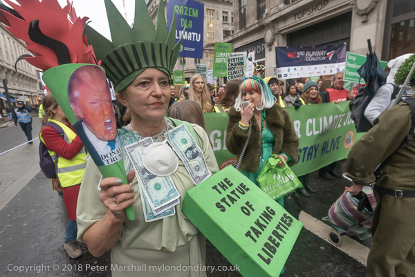Several thousand marched through London from a Campaign against Climate Change led rally outside the Polish Embassy where grave doubts were expressed about next week's UN climate talks in Katowice, Poland, which are being sponsored by leading firms in Poland's fossil fuel industry.