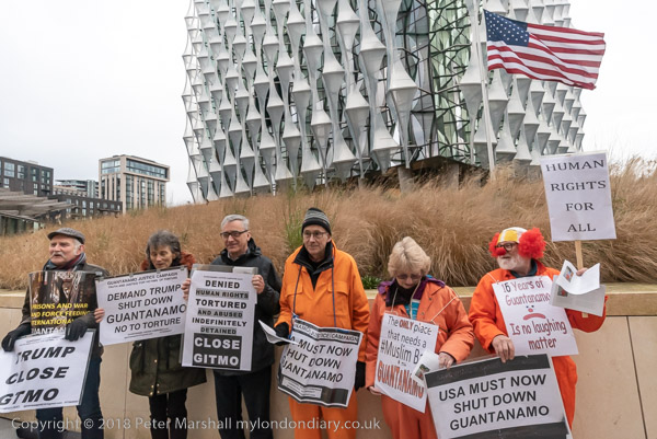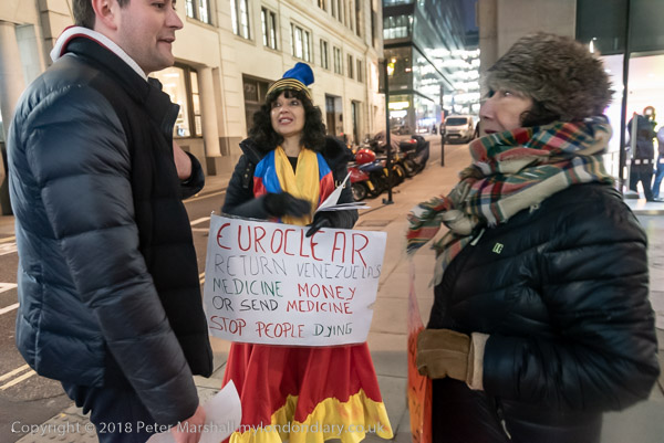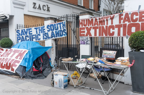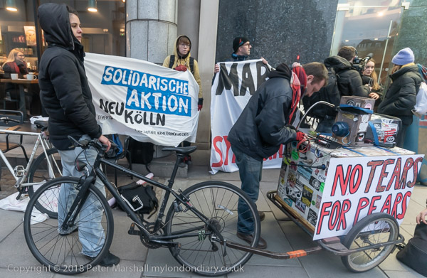 The protest took place on the steps leading up to 155 Bishopsgate. Security there objected to banners being taped to the wall, worried that the gaffer tape might cause some damage, but told the campaigners the protest could go ahead on the private steps if these were removed - which after some argument they were.