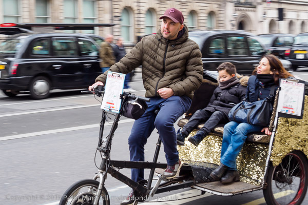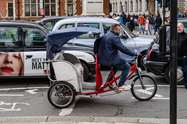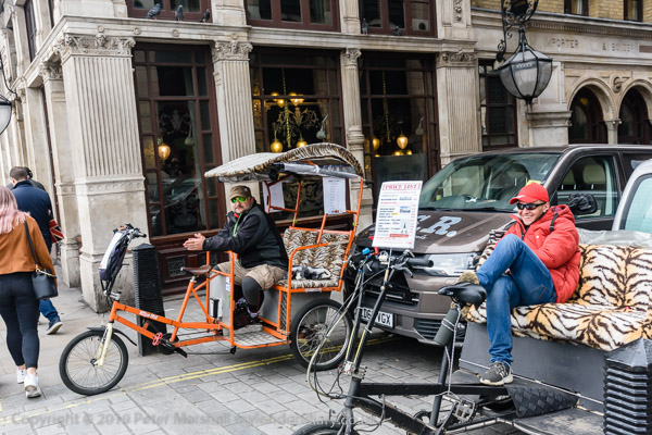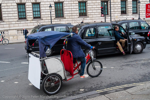A ride to Trafalgar Square, half a mile away, costs £10 per person.