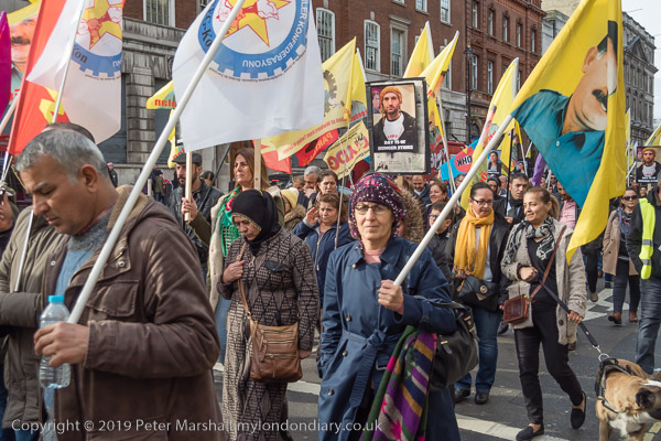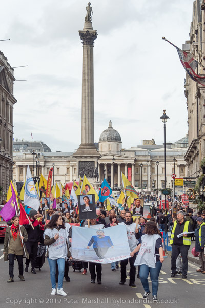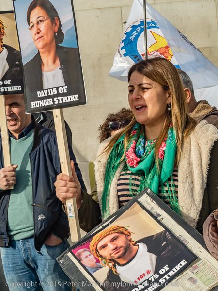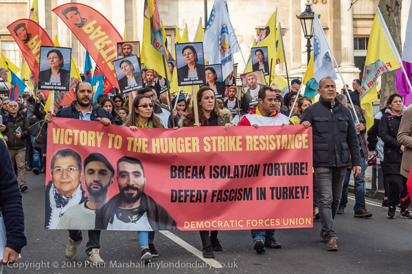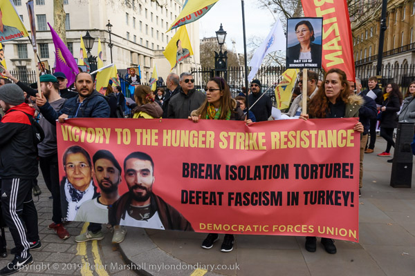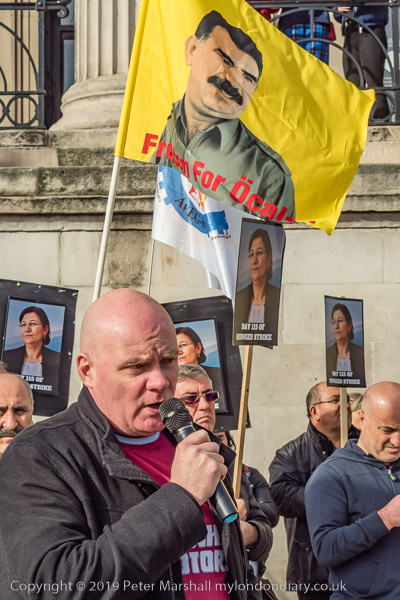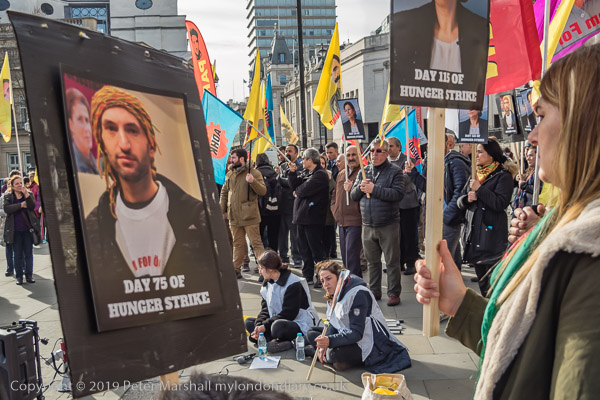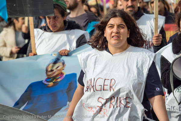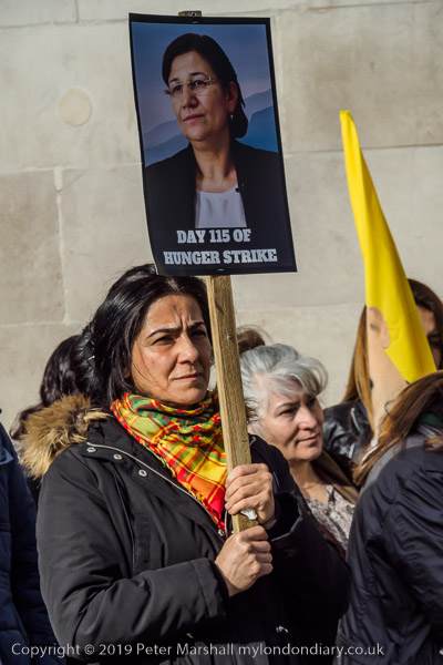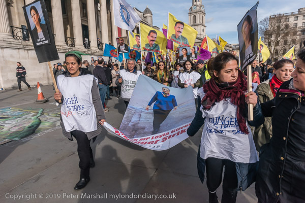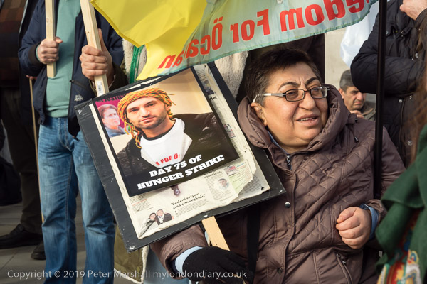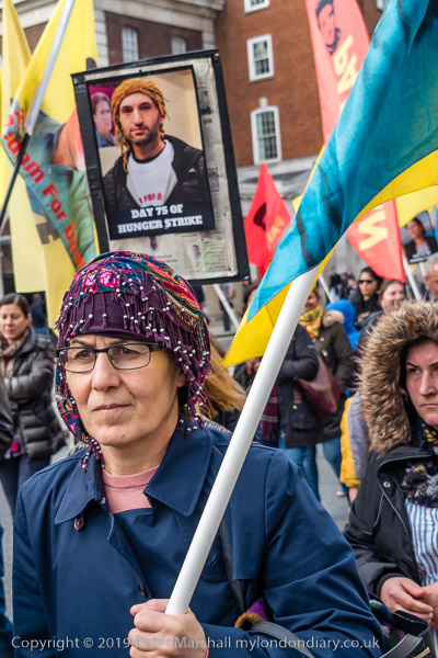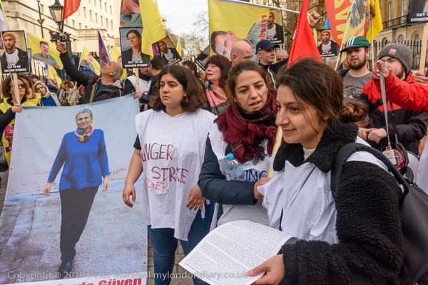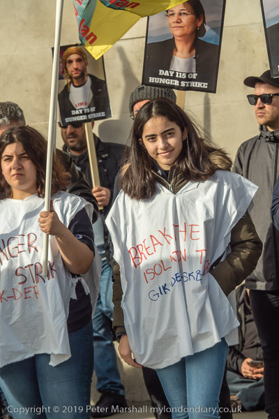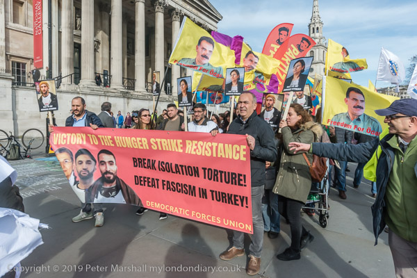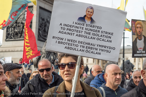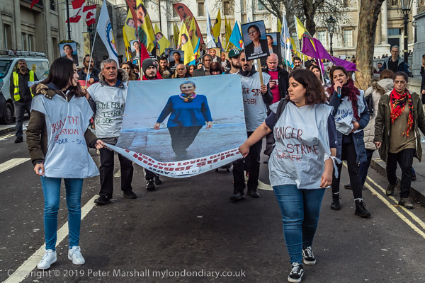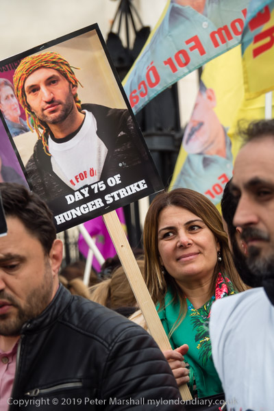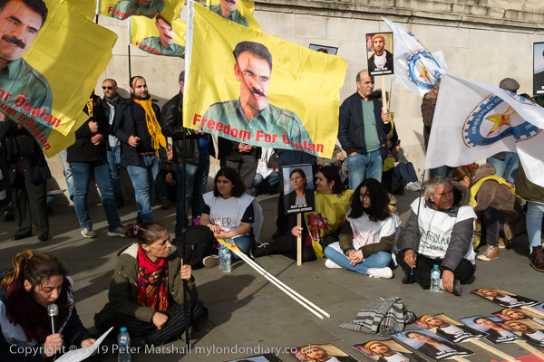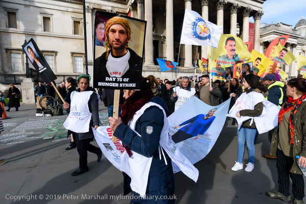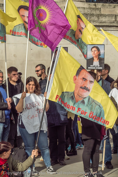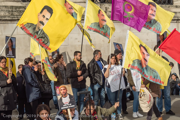 Many hold flags showing Kurdish leader Ocalan, in solitary confinement