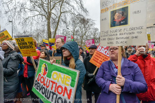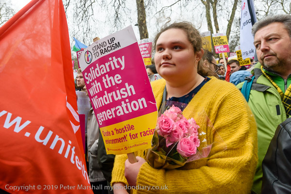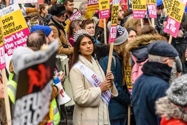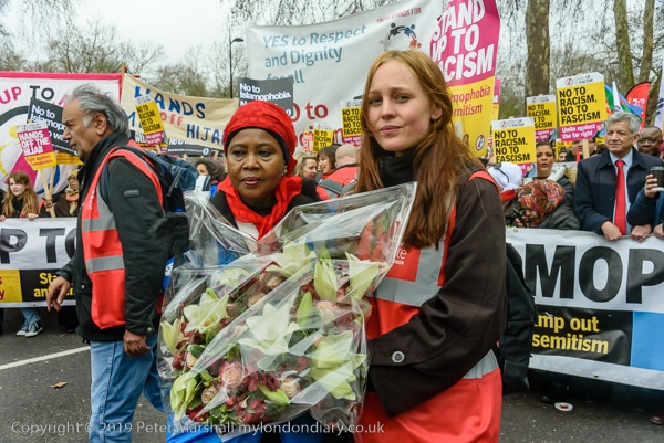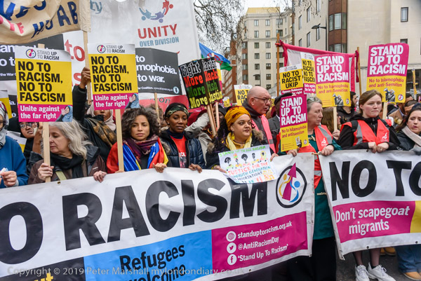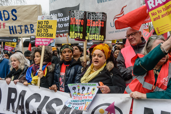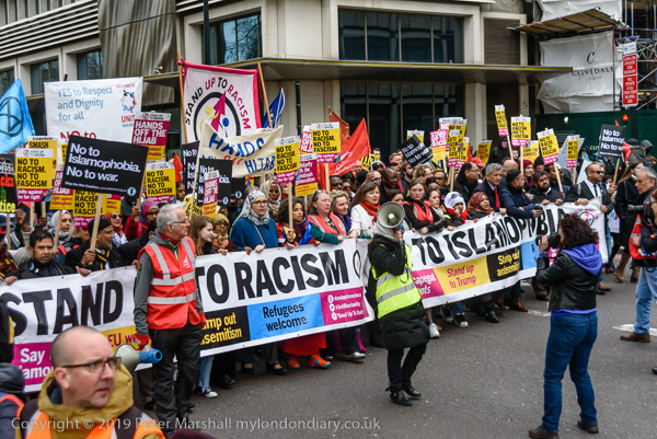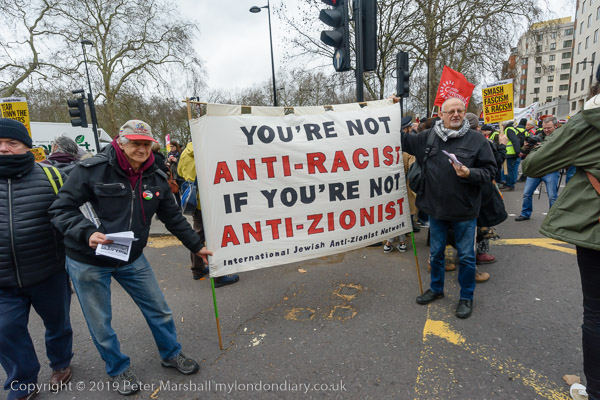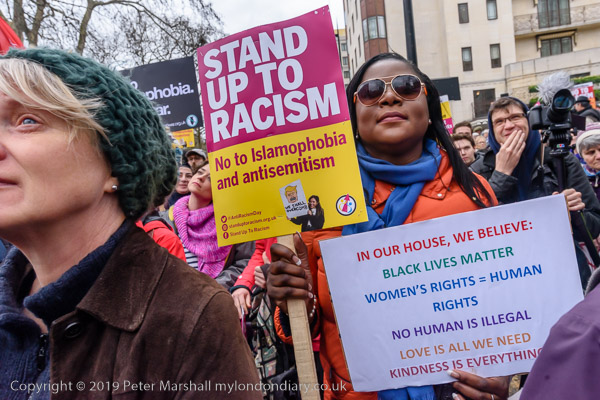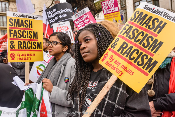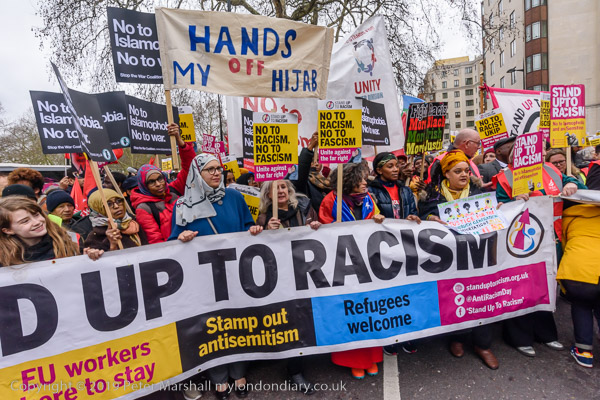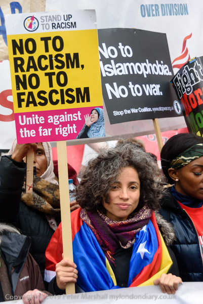 'Stand up to Racism - No to Islamophobia and antisemitism' and a woman