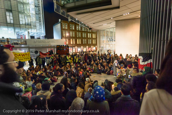 People meet up in front of the News Corp building, the UK HQ of Murdoch's
