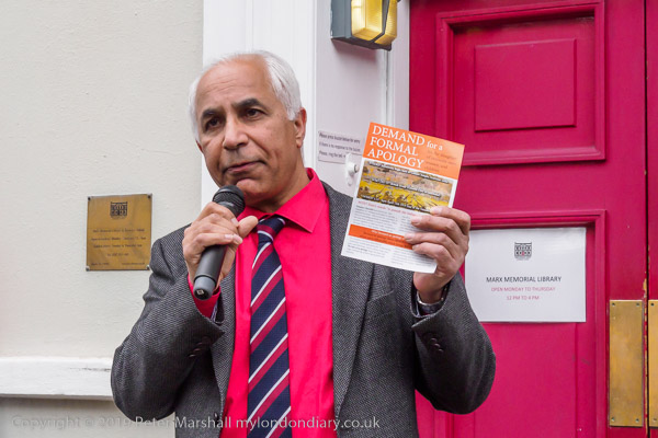 A speaker from the Indian Workers talks about the massacre and the