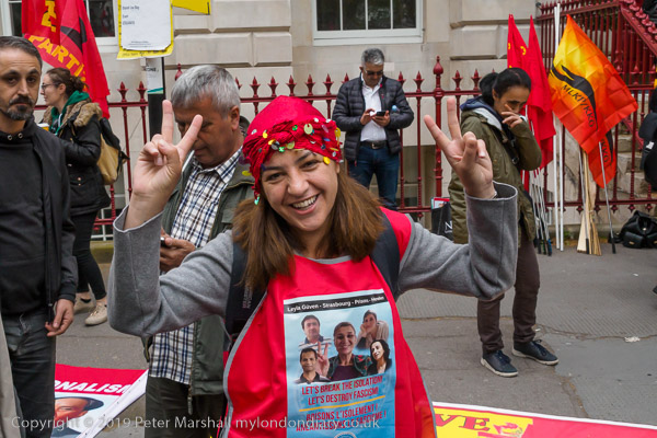 A Kurdish woman wears an apron 'Let's break the isolation - Let's