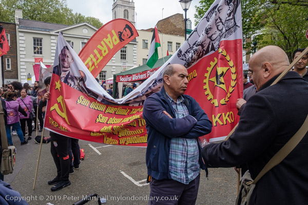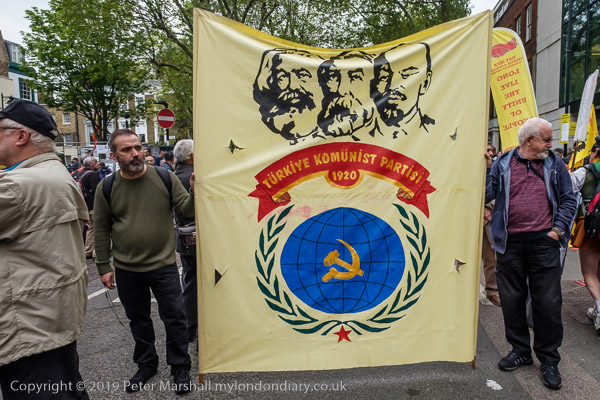 Marx, Engles, Lenin, Stalin on a Turkish Communist banner