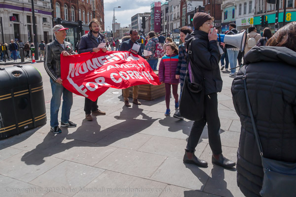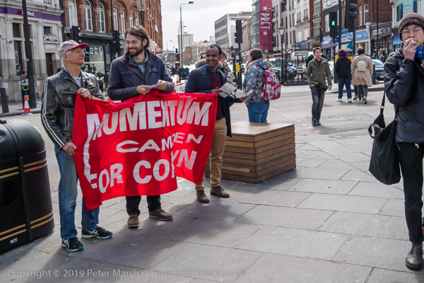 On the corner by the station Camden Momentum were protesting about