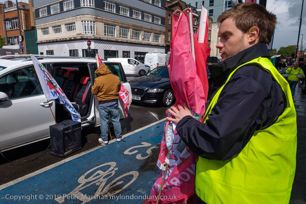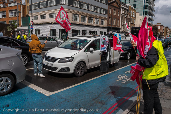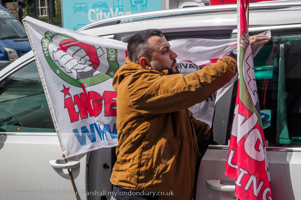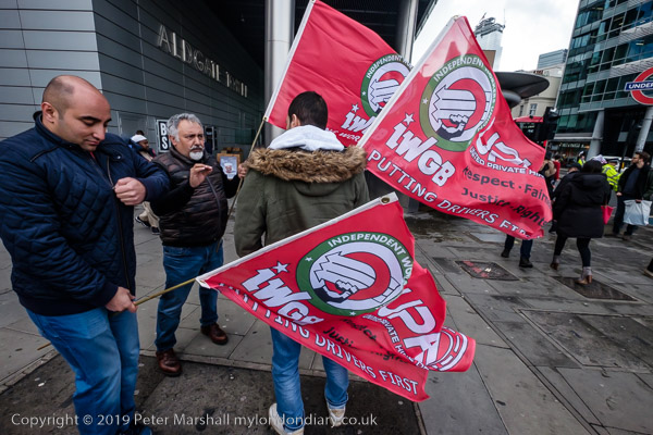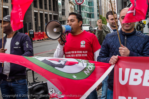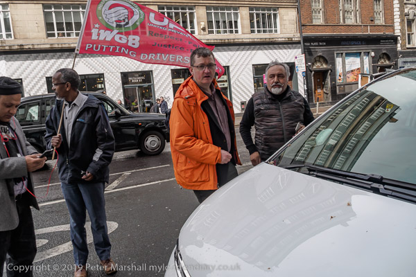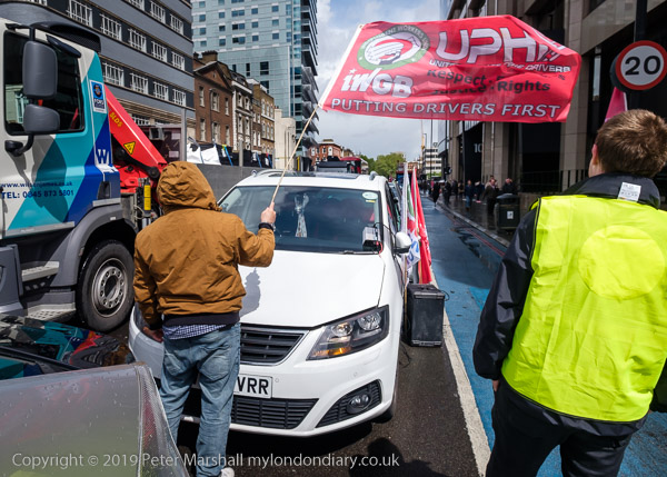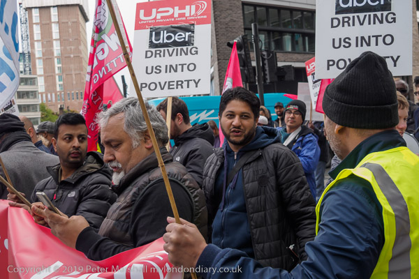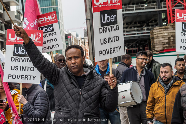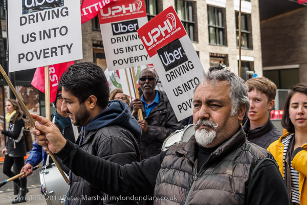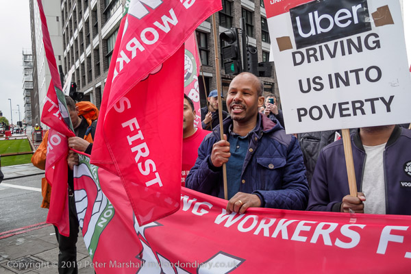 UPHD co-founder James Farrar holds a placard 'Uber Driving us into