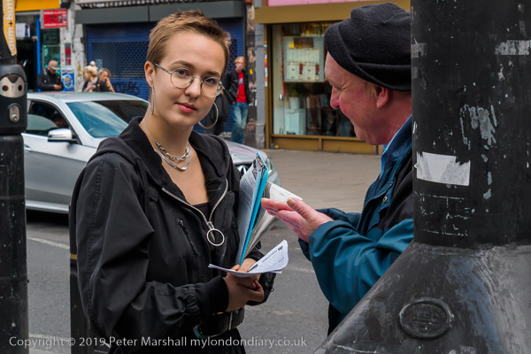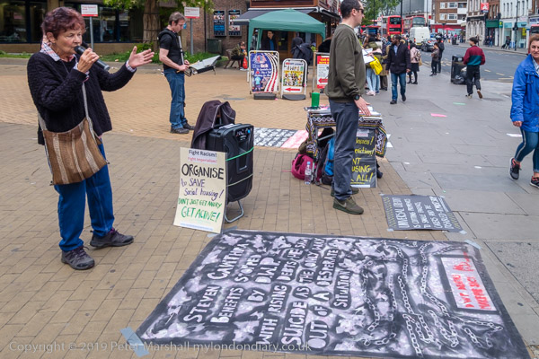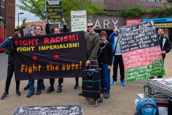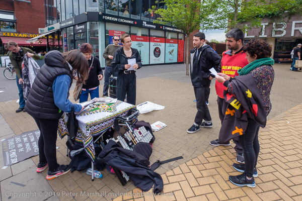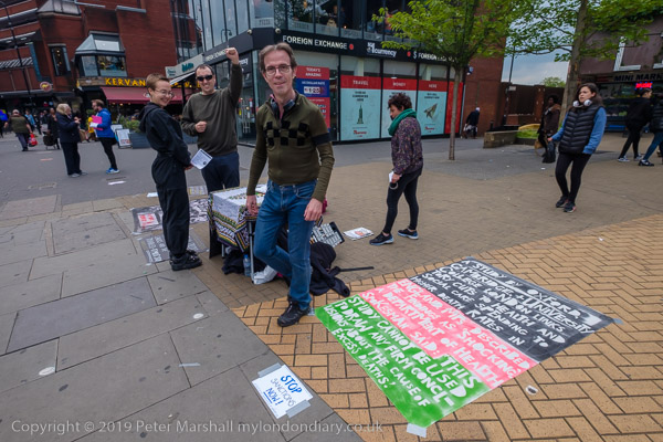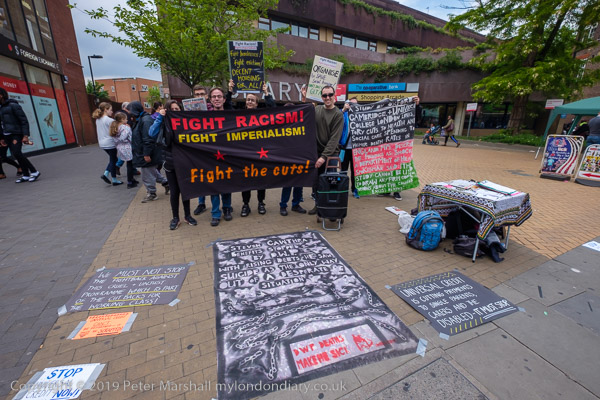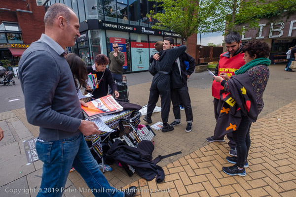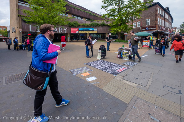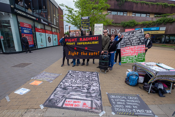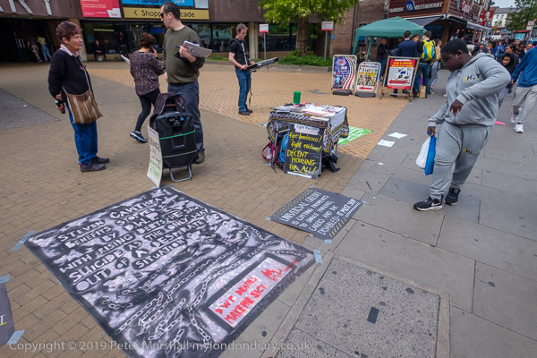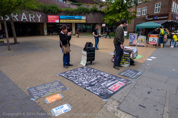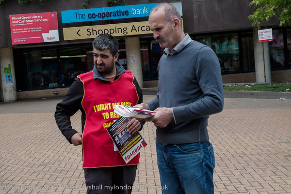 In front of the library at Wood Green were two groups of protesters,