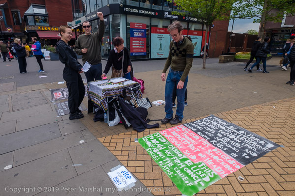 Some paused to read the posters or take a leaflet