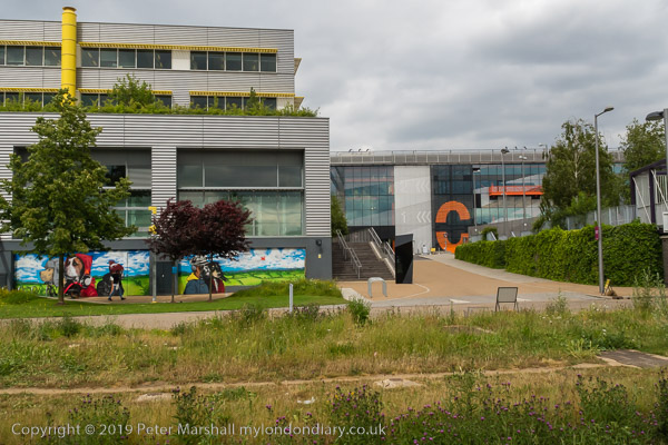 At left the Olympic stadium. The Hertford Union canal goes off to