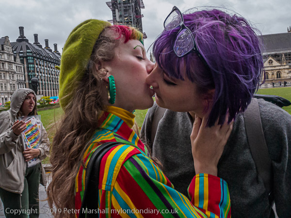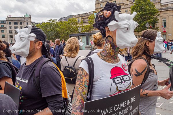 I left to go to Whitehall and Parliament Square and saw a few more hanging around the pubs close to where they had been intending to march. After photographing another event there I returned to the BBC hoping to photograph them marching, but they had still not left. Just after I arrived an angry group rushed off towards the Algerian embassy to attack protesters there, but I decided to keep out of the way. The rest were still standing around doing nothing and I gave up and went home. Later I heard that eventually those that hadn't drifted away did march and held a rally close to Downing St.