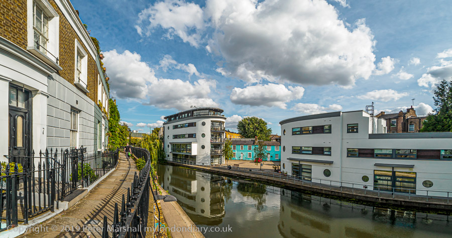 I had arranged to meet an artist friend at King's Place to walk along a section of the canal with her to Camden. I went early and took a train to Camden Road and then walked to Kings Place along Agar Grove and through the Maiden Lane Estate and then down York Way with a few detours.