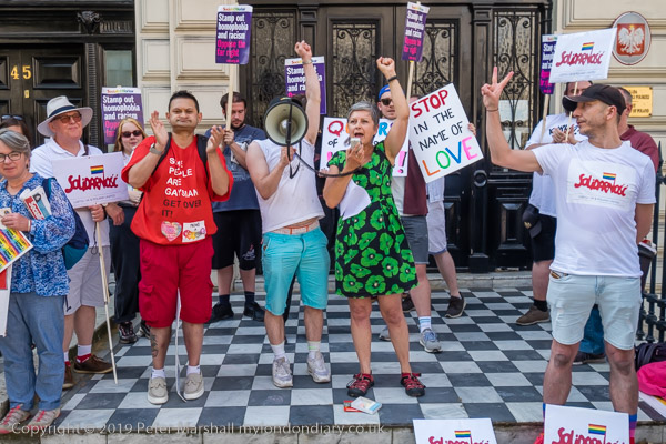Protesters came to the Polish Embassy to show solidarity the LGBTQ+ community in Poland.