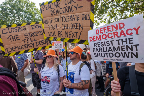 Thousands of both leave and remain supporters enraged at Boris Johnson's attack on our democracy by shutting down Parliament to prevent discussion on leaving Europe without a deal fill Whitehall in protest.