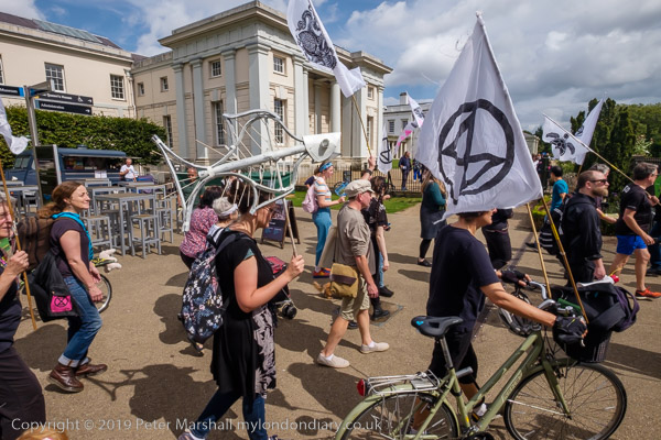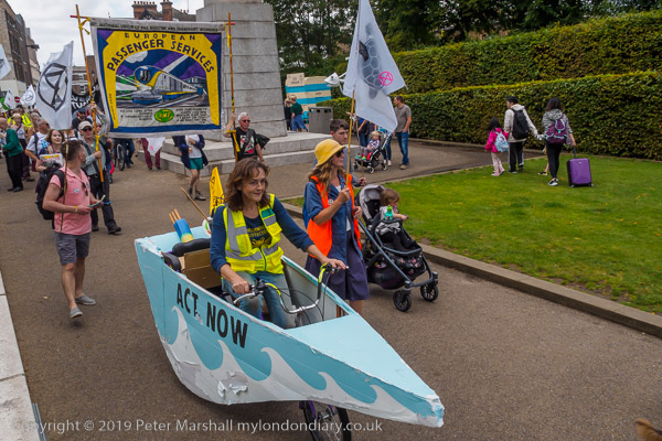 'Act Now' a bicycle as a boat as a reminder of rising sea levels
