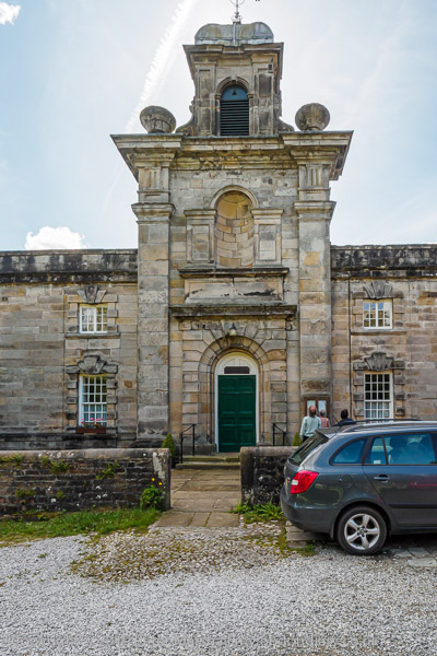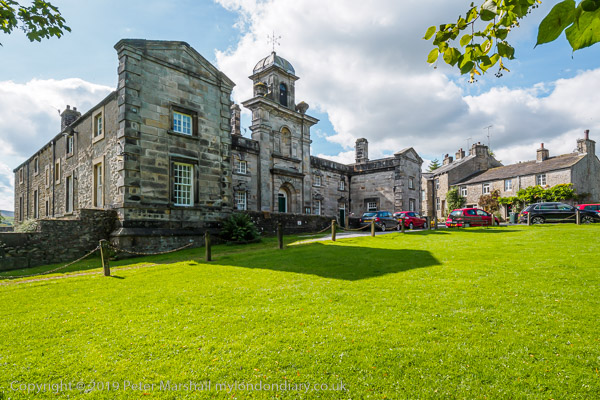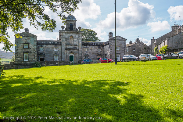 A large village green is dominated by the Fountaine Hospital Almshouse