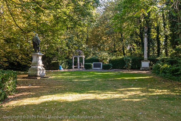 and an area of parkland with memorials to the gas industry and its