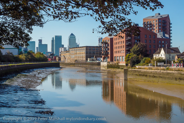 River Lea and Bow Creek with Stratford tower blocks