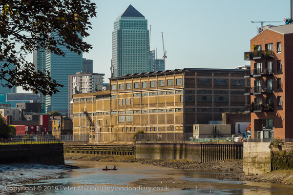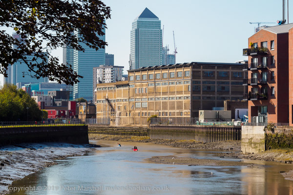 The tide was very low. People came up river from Cody Dock in canoes