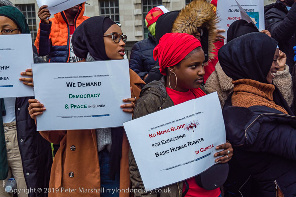 Guineans protest at Downing St against a constitutional change which would allow President Alpha Conde to seek a third term in power.
