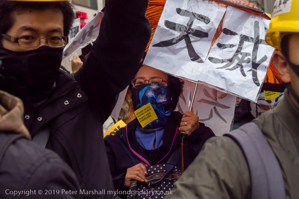 on itProtesters almost all dressed in black and many with black masks meet at Marble Arch to march along the pavement of Oxford St in solidarity and supporting the five demands of the Hong Kong protesters.