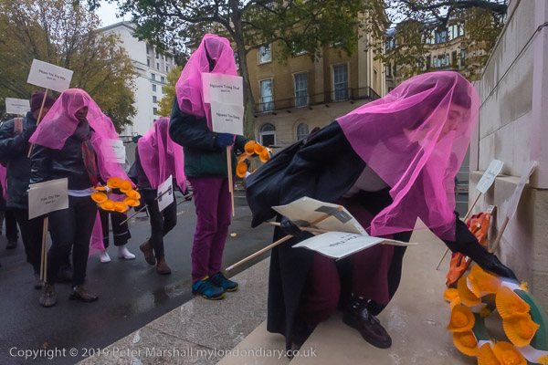 Lesbians and Gays Support the Migrants host a ceremony at the Ministry of Defence with other groups the day before Remembrance Sunday to remember all who died fleeing war-torn countries to seek refuge in the past year.