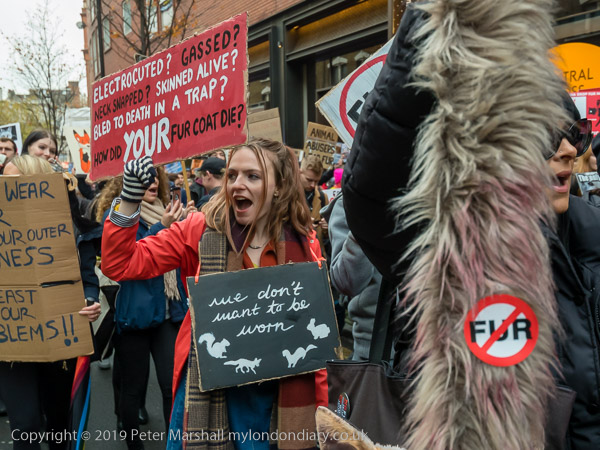 The annual march against fur in London met at Leicester Square for a rally before the march.