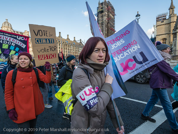 London UCU led a march by supporters and students in support of their 8 day strike over pensions, pay and conditions and in solidarity with the Youth Climate Strike also taking part in London today.