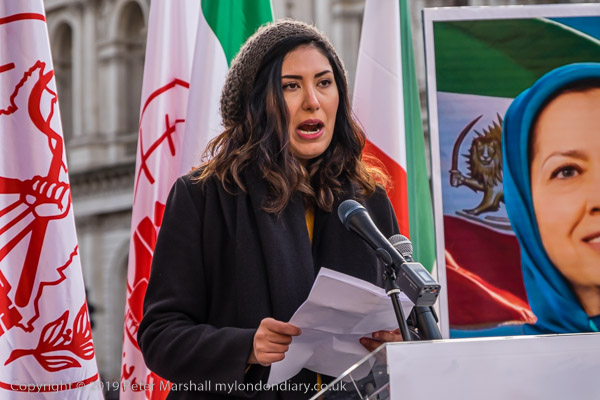 Anglo-Iranian Communities in the UK and supporters of the People's Mujahedin of Iran's National Council of Resistance of Iran rally at Downing St in support of protests in Iran against the clerical regime.