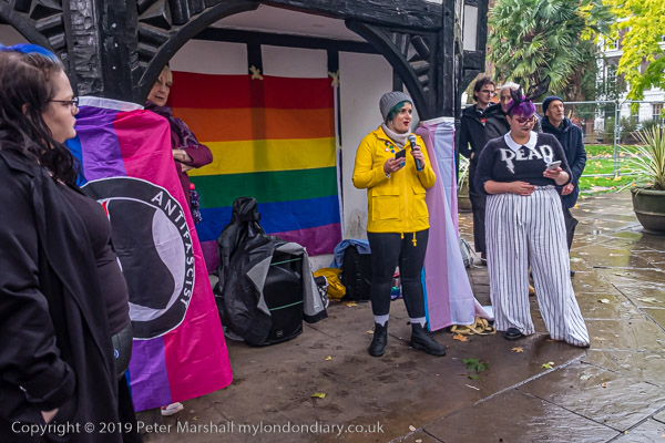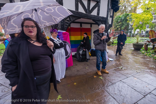 One of the organisers of the event in Soho Square with a London Bi
