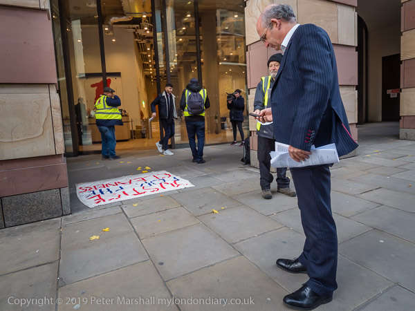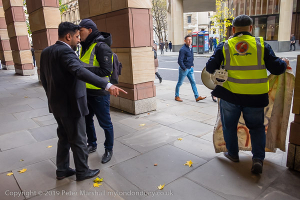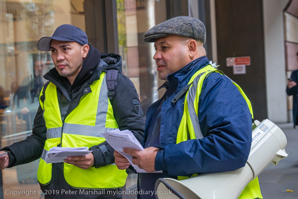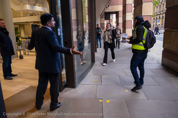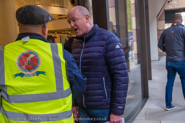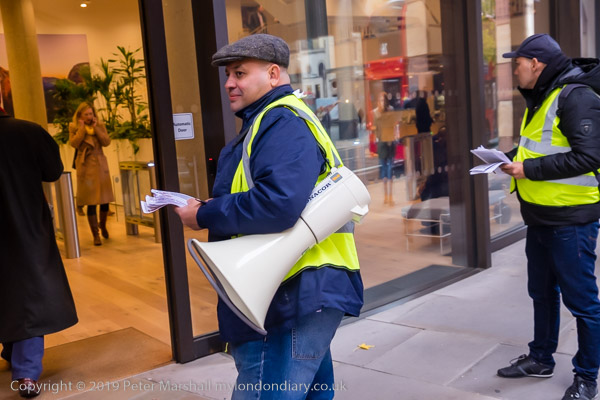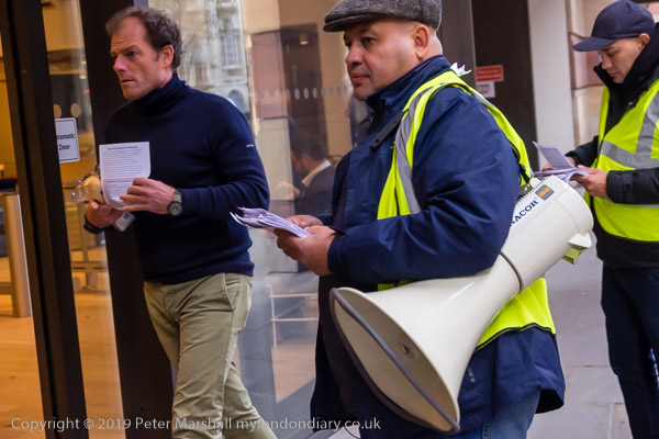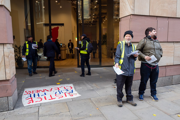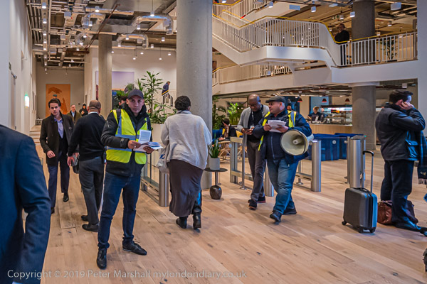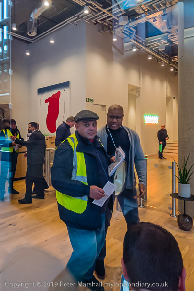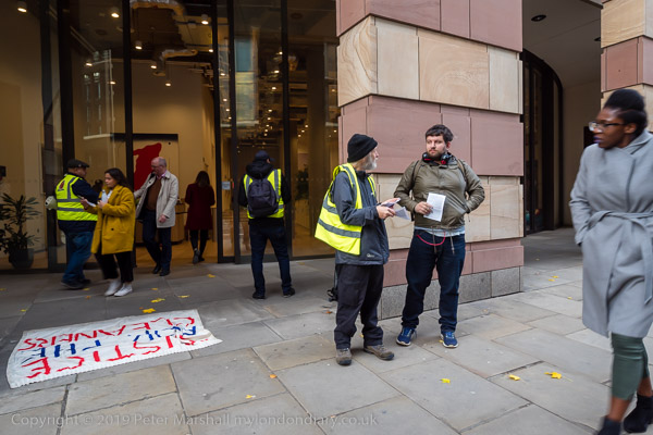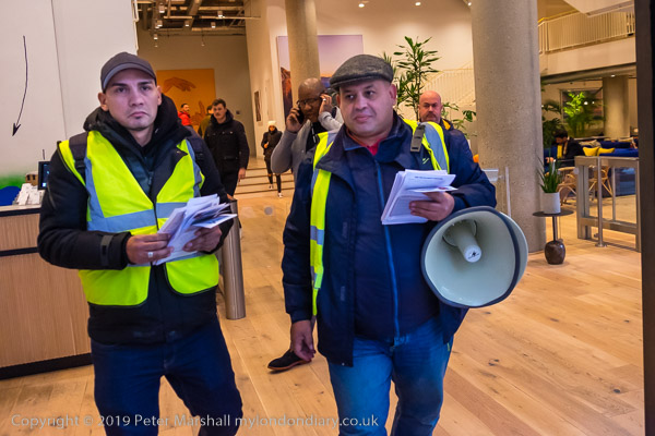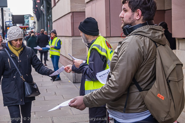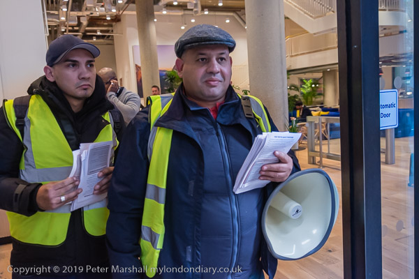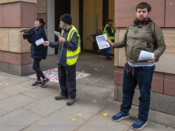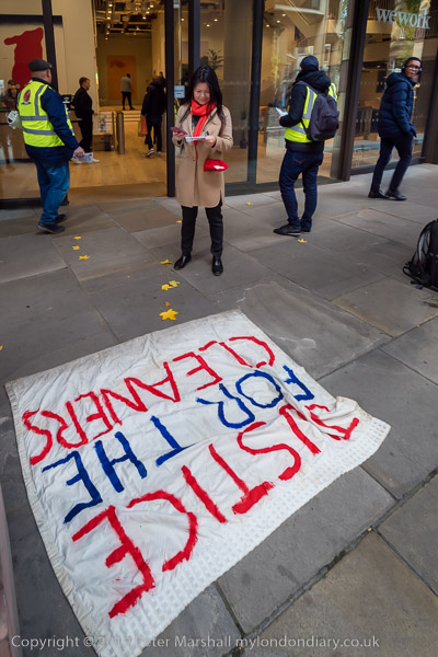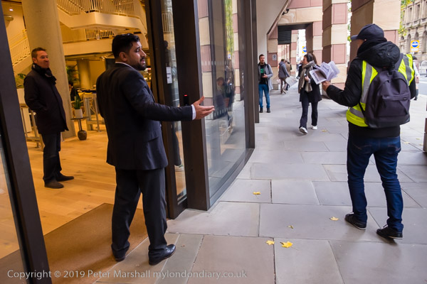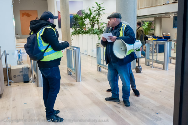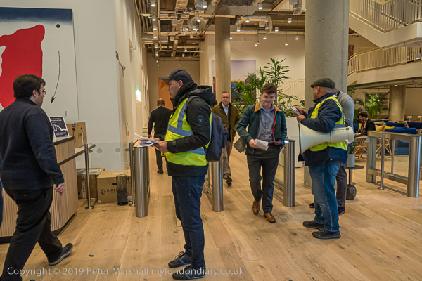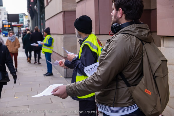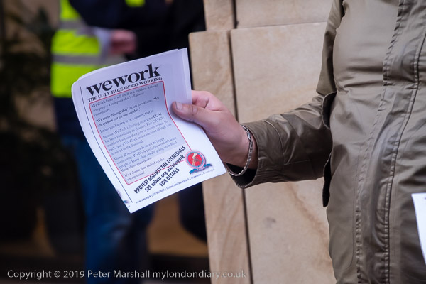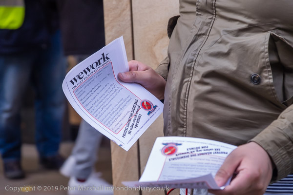 Two people handing out CAIWU fliers inside the WeWork offices were asked
