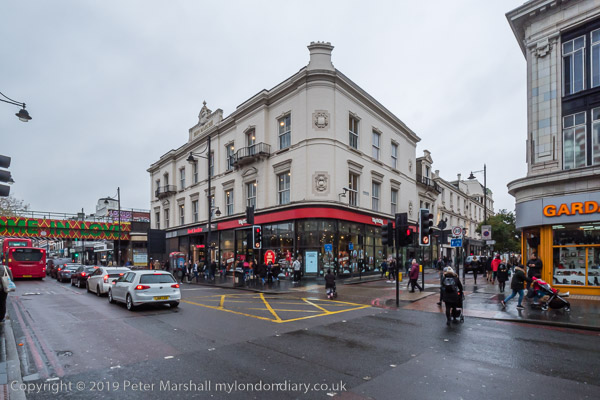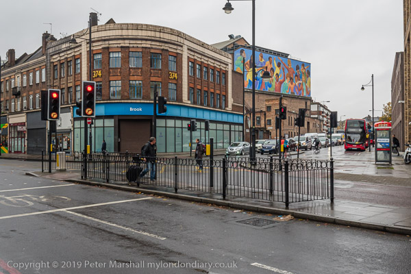 Brixton Road and Stockwell Rd. At left the former Quin & Axtens