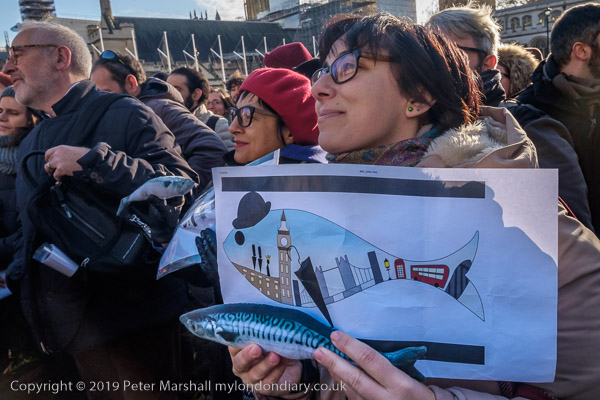 Hundreds of Italians came to Parliament Square to show their support for '6000 sardines', the spontaneous pacifist and antifascist citizen movement in Italy.