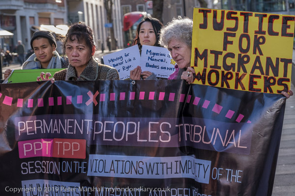 The Permanent People's Tribunal organised a protest at the Home Office to support migrants on the 40th UN International Migrants Day.