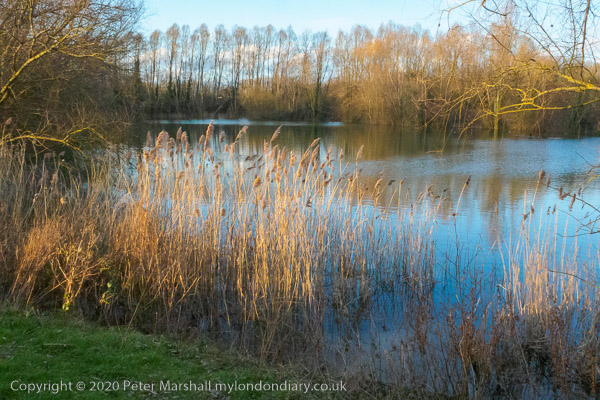 I think the borough is roughly two-thirds water, with rivers including the Thames (usually its south and west boundary) and Colne, huge reservoirs and many worked out gravel pits. It's cheaper for the gravel companies not to reclaim these but to leave them for various other 'uses', often completely disused. Some close to the centre of Staines are now a nature park, and we walked through this between the lakes.