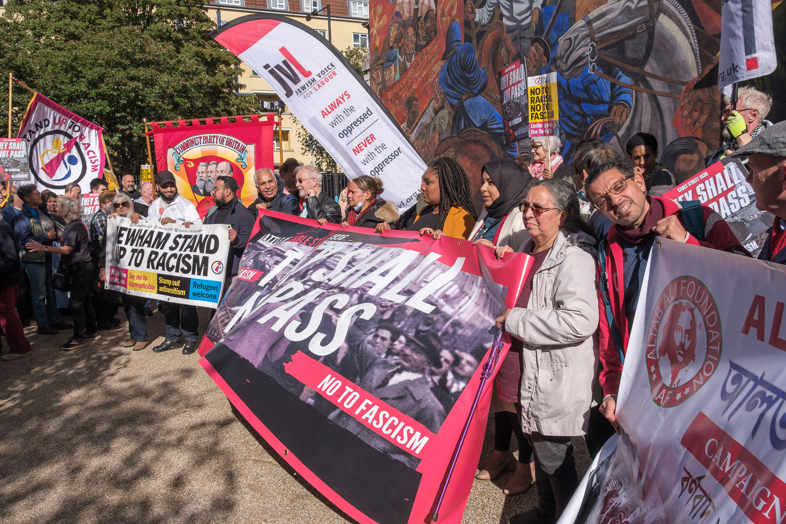 London, march, fascist threat, Cable St, Cable Street, 85 years, 1936, Jewish, Irish, East End, communities, blocked streets, police, Oswald Mosley, BUF, British Union of Fascists, mural, history, working class history, blackshirts, trade unionists, Jews, Gardiners Corner, Aldgate, living history, racism, antisemitism, NF, Naitonal Front, Bengalis, Bengali youth, EDL, Britain First, no to racism, no to fascism, they shall not pass, no pasaran, workers, unemployed, socialists, communists, racist violence, discrimination, multiculturalism, multicultural future, Nazis, Nazi sympathiser, Irish dockers, anti-semitism, David Rosenberg, historian, Julie Begum, Bengali activist, Michael Rosen, Ruth Levitas, Morry Levitas, Max Levitas, Tony Booth, Albert Booth, June Legg, Beatty Orwell, Apsana Begum MP, Jeremy Corbyn MP, Rabbi Herschel Gluck, Altab Ali Foundation, Bangladeshi Workers Council, Indian Workers Association-GB, Jewish Socialists’ Group,
