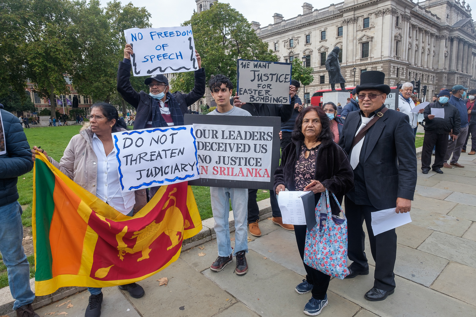 Sri Lanka, Sri Lankans, protest, London, Parliament Square, democracy, justice victims, Easter Bombings, suicide bombs, churches, hotels, April 2019, attacks, attackers, state security, state intelligence, allegations, Cardinal Malcolm Ranjith, truth, political conspiracy,