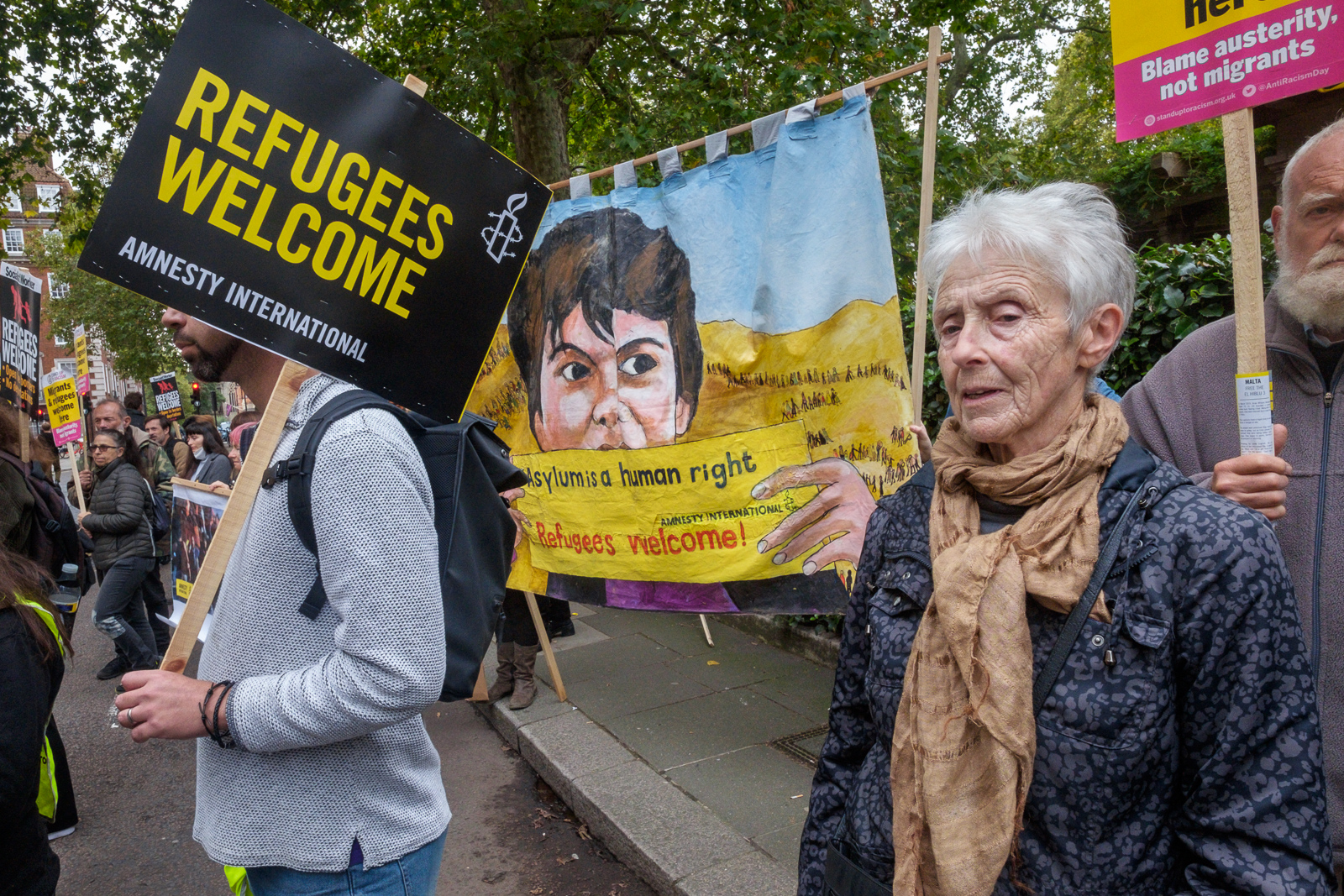 Amnesty's London Day of Action began with speeches at the Italian Embassy against the criminalisation of refugees and the collaboration with Libya in returning refugees to torture, rape, and extortion, moving on to Malta House calling for charges against 3 boys who tried to negotiate the rescue of refugees and finally went to the Home Office to call for safe legal asylum routes and fair procedures regardless of how they have arrived.
