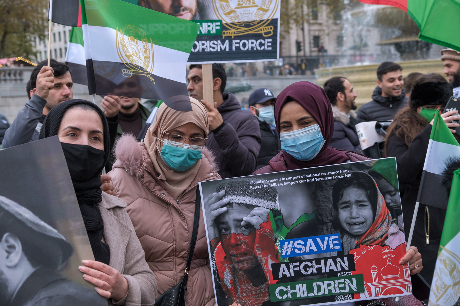 The National Resistance Front of Afghanistan hold a really in Trafalgar Square calling on people to oppose the Taliban which they describe as a barbaric terrorist organisation. They say if the Taliban government is recognised internationally they will travel the world and set up terrorist bases and called on action to save Afghan children and get them and others out of the country.