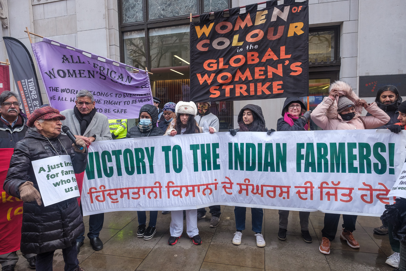 London, protest, celebrations, Indian Farmers, victory celebration, President Modi, farm laws, repeal, Indian protests, minimum support price, electricity bill, Labour Laws, Dalits, Adivasi, women, girls, agribusiness, multinationals, BayercropScience, Netafim, Ambani, Adani, historic victory, police violence, police, Modi's thugs, imprisonment, injuries, beatings, rapes, farmers movement, natural farming, Global Women’s Strike, Indian Workers Association, Women of Colour, GWS, Selma James