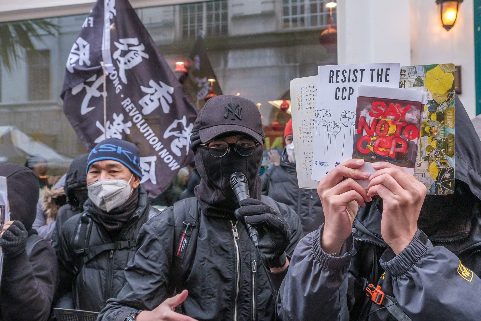Dr Pen Wang, CSSA, Chinese Students and Scholars, Dr Ping Hua, Bobby Chan, Kate Hudson, Liz Fekete, Gus John, Fional Edwards, Sequoyah De Souza Vigneswaren, Suresh Grover, Aliya Yule, Migrants Organise, Janpal Basran, Southall Community Alliance, Hong Kong, freedom, counter-protest, shouting, calendars, Pagoda Arts, Liverpool, musician, Monitoring Group, Murad Qureshi, racial assault, racists, racial attack, no to racism, no new cold war,