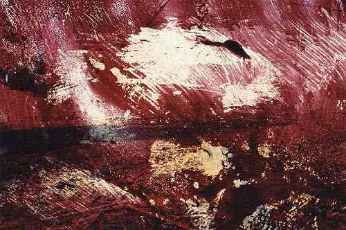 | Red Landscape (above - original in colour) was recently shown in the Payroll Exhibition which was organised by Cooltan Arts. Over 30 artists covering a wide range of media showed their personal response to the word Payroll. The show took place in a large empty unit in the Elephant and Castle shopping centre - courtesy of Tesco Stores plc. | 'Taken in Cheshire, I have hand-manipulated the image more or less eradicating the original photograph but making use of some of the shapes and textures. Despite this, for me there is still much of the initial scene present: - the cold winter day, the hard ground, the ominous presence of the farm tractor intruding from the left. Although the original subject/content my be somewhat subverted, my experiences and the meanings of the photography to me are not lost. The manipulation is part of a continuing development of my relationship and experience of the initial image.' |